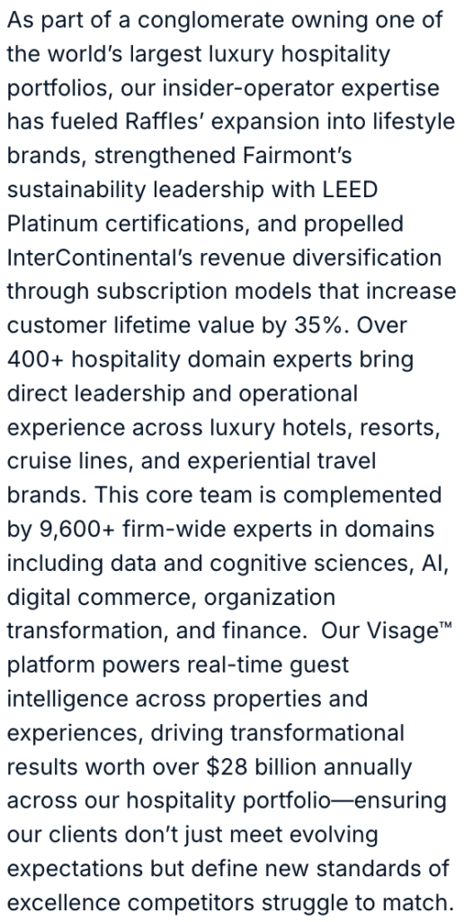For example, one internationally recognized hospitality brand elevated guest satisfaction scores by 35% by implementing anticipatory design strategies, offering pre-arrival personalization such as preferred wine selections, customized room temperature and lighting, and curated in-room music. Another leading brand saw significant impact by crafting bespoke itineraries that connected guests with their cultural heritage, transforming travel into an emotionally resonant and deeply personal journey.